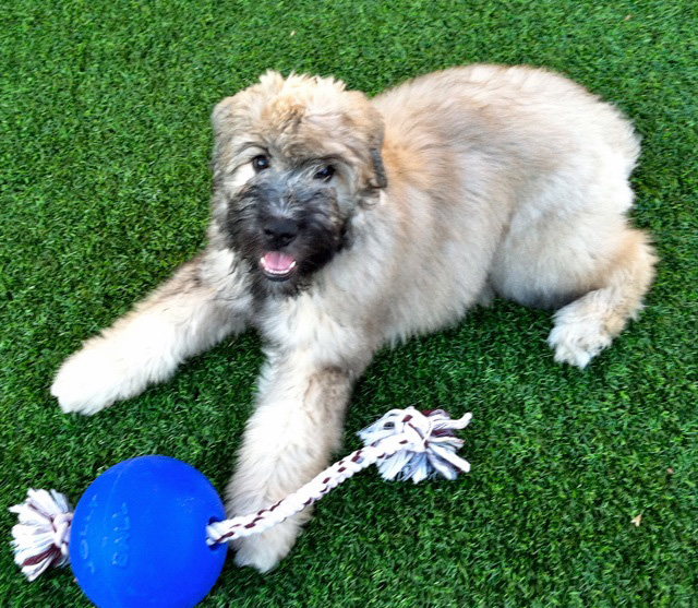 Zura happily with the rop toy.